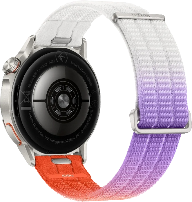 • Тонкий корпус из титана: Высокопрочный титановый сплав в сочетании с плетеным ремешком HUAWEI AirDry™ создает легкую, но невероятно прочную конструкцию.